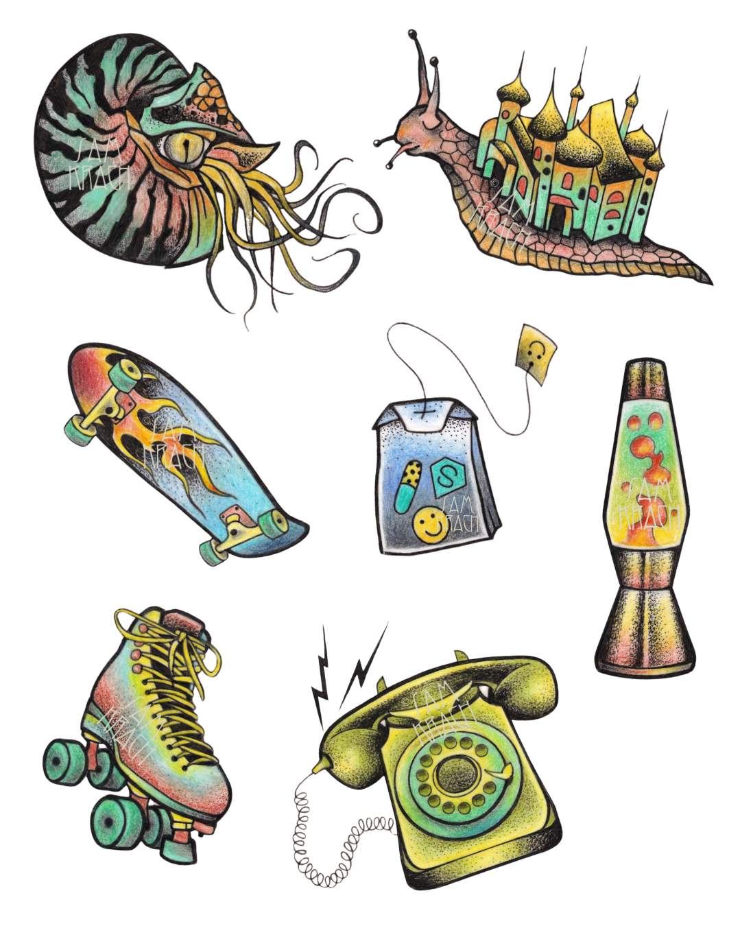 Hier findest du eine Auswahl meiner verfügbaren Tattoo-Designs. Jedes Motiv ist mit viel Liebe zum Detail entstanden und wurde von Hand mit Buntstift, Fineliner und Graffitimarkern gezeichnet.